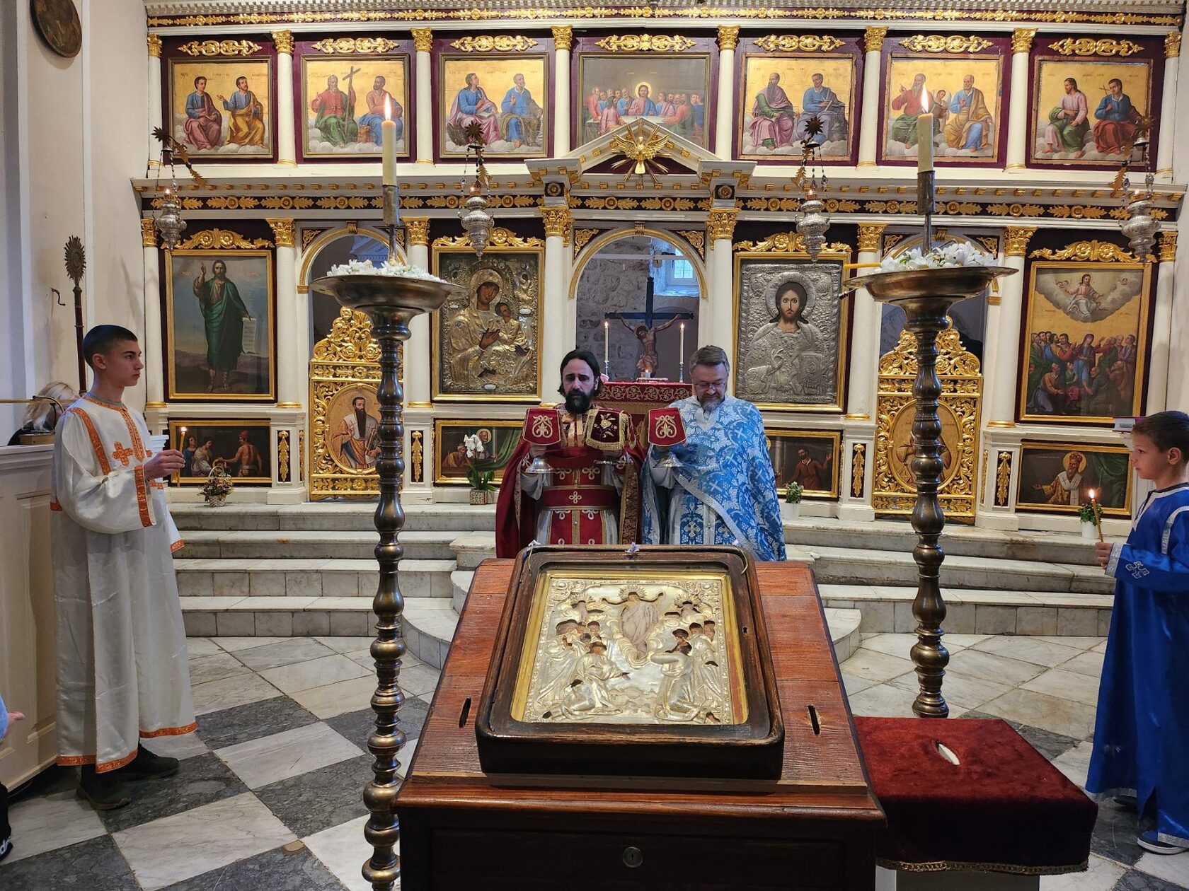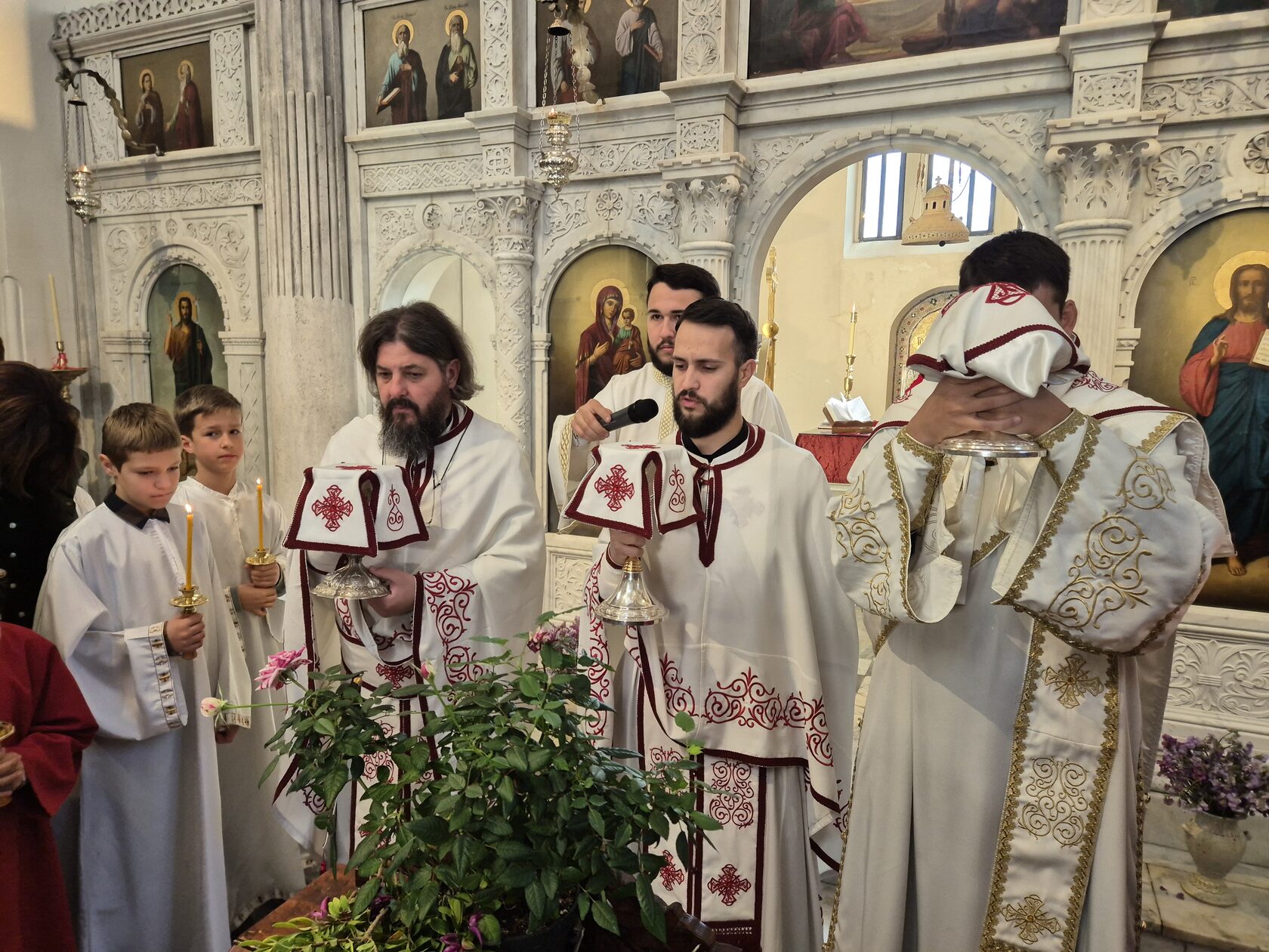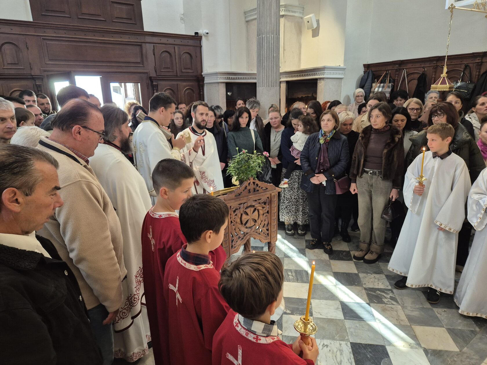 У храму Светог Архангела Михаила у Старом граду, свештеним литургијским сабрањем началствовао је јереј Ненад Ковач, уз саслужење намјесника херцегновског протојереја-ставрофора Обрена Јовановића и ђакона Илије Преочанина. Мноштво сабраних у одговарању на прозбе предводио је хор Светог Саве, под управом хоровође Сање Радовић. Након прочитаног јеванђелског зачала бесједио је отац Ненад.