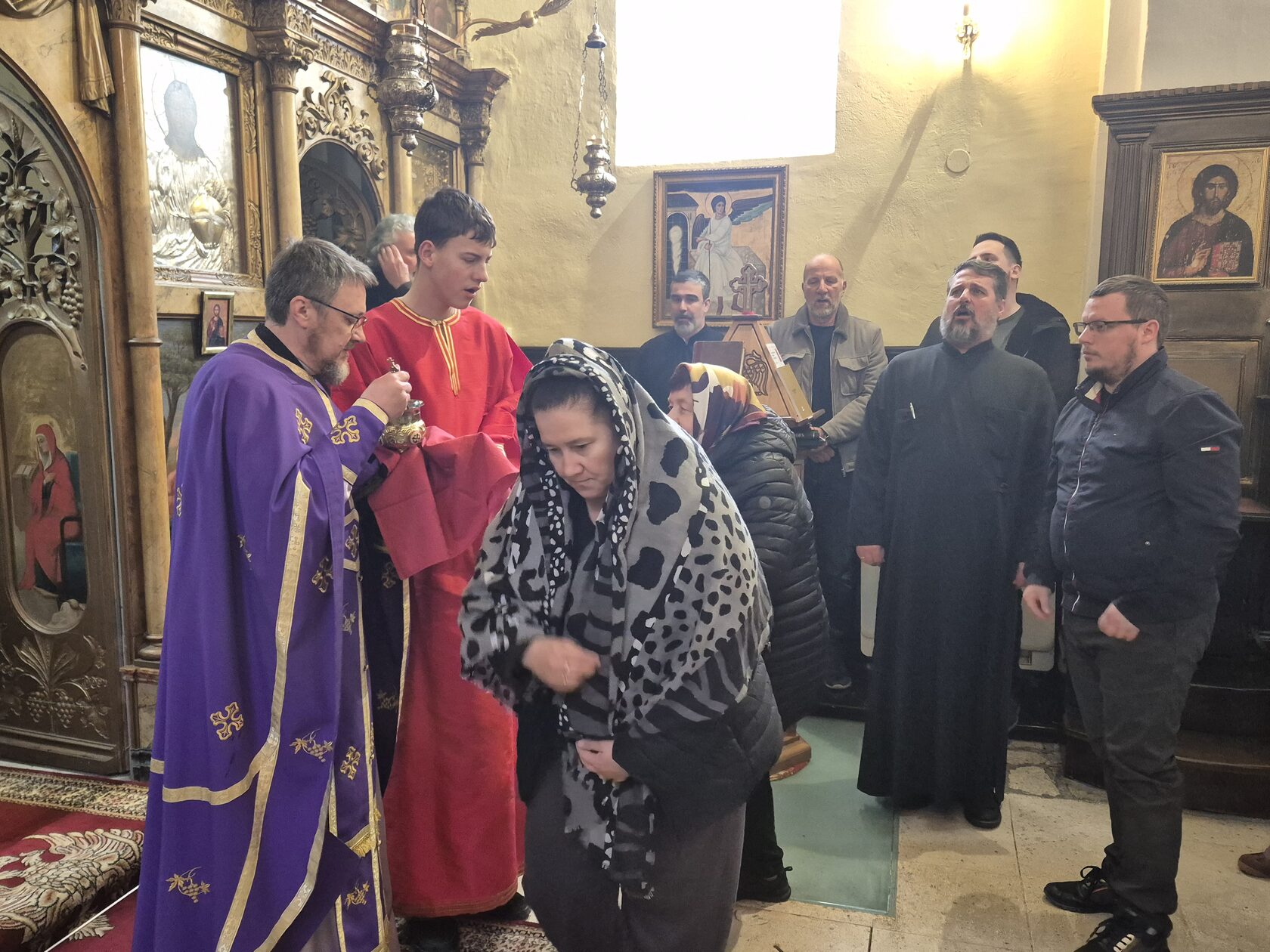 Данас, у петак прве недјеље Часног поста, Литургија је служена у храму Полагања Ризе Пресвете Богородице у Бијелој. Литургијским сабрањем начелствовао је игуман савински јеромонах Макарије уз саслужење намјесника херцегновског протојереја-ставрофора Обрена Јовановића, протојереја Владана Пантелића и ђакона Илије Преочанина.