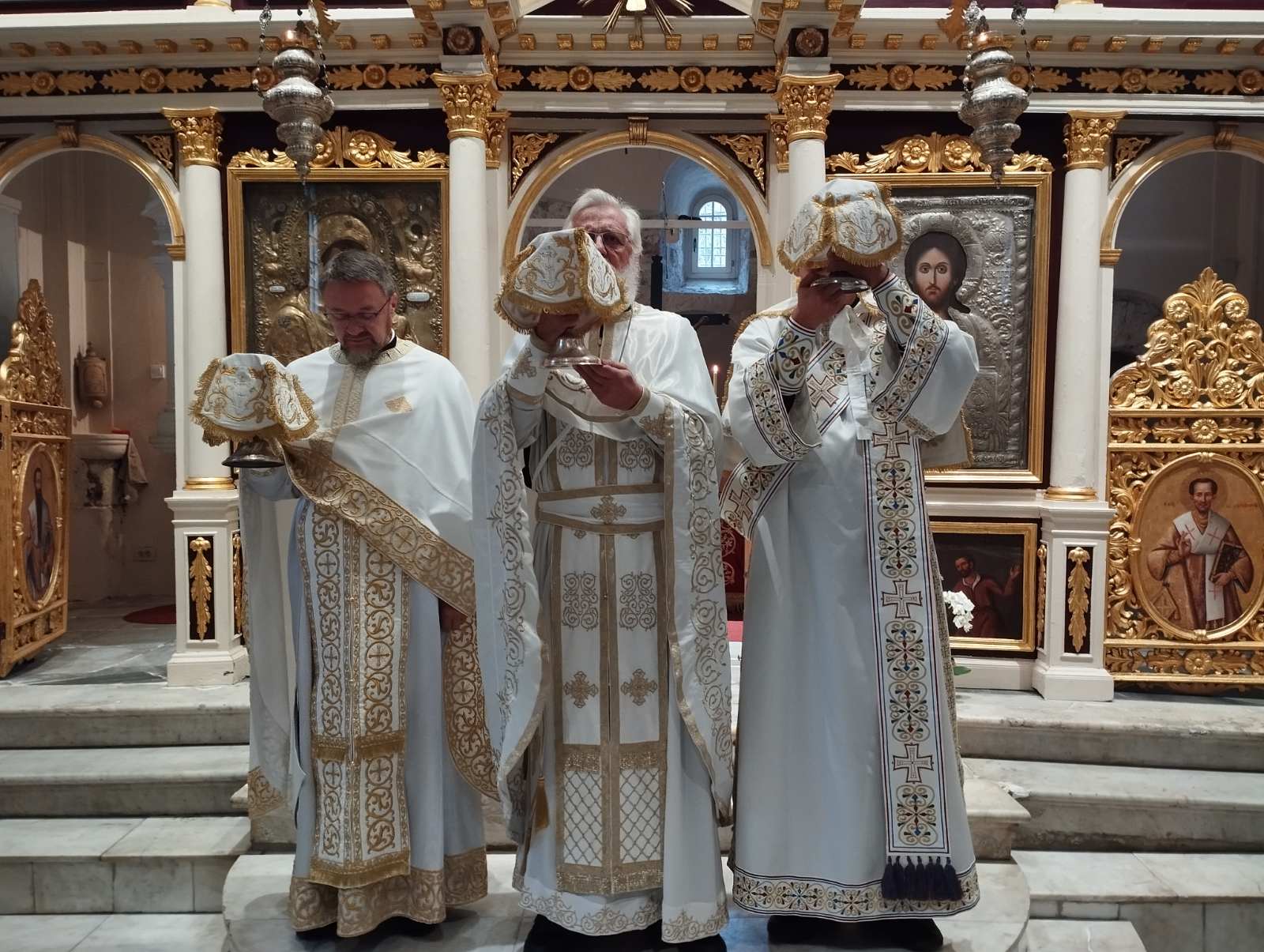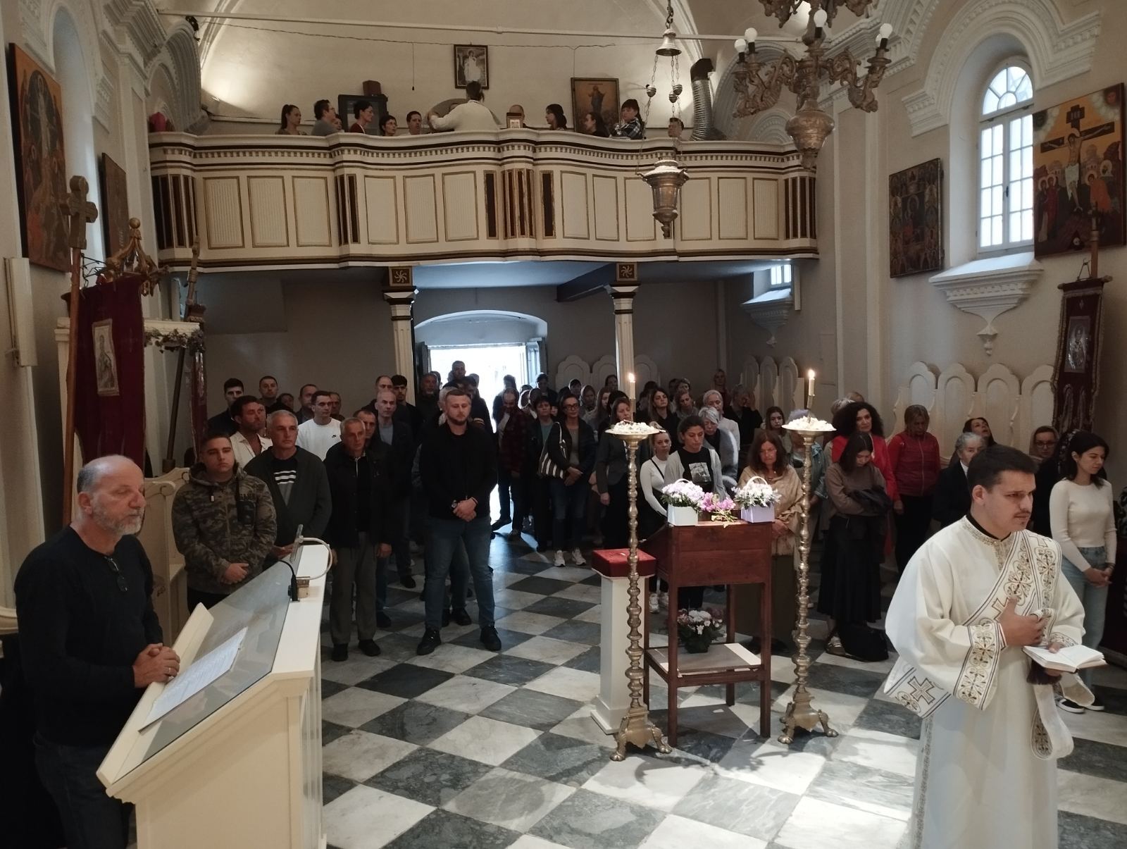 На Литургији је началствовао старјешина храма протојереј Никола Тодоровић уз саслужење јереја Ненада Ковача. Осим румунског хора, појали су и појци при овом храму, Ненад Витомировић и Јасмина Леповић, док су у олтару прислуживали чтец Немања Бијеловић, Јован Арсовић и Јаков. По прочитаном јеванђелском зачалу, бесједио је отац Никола.
