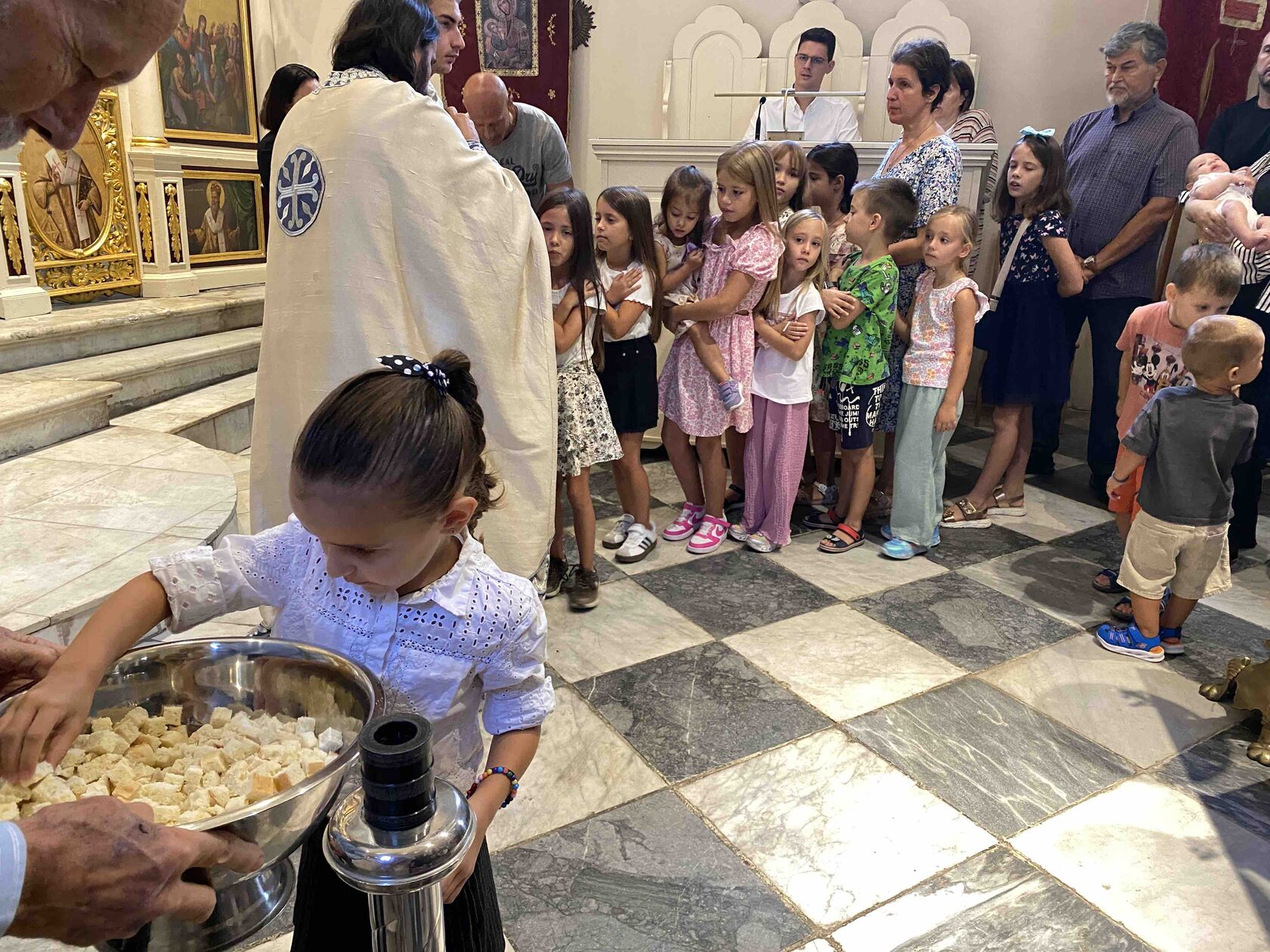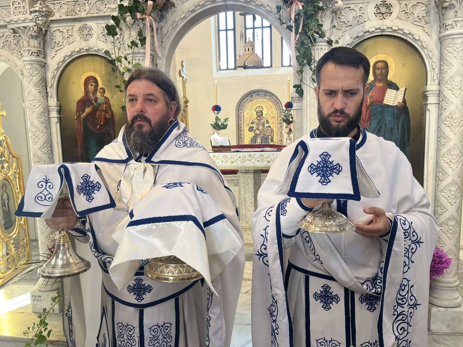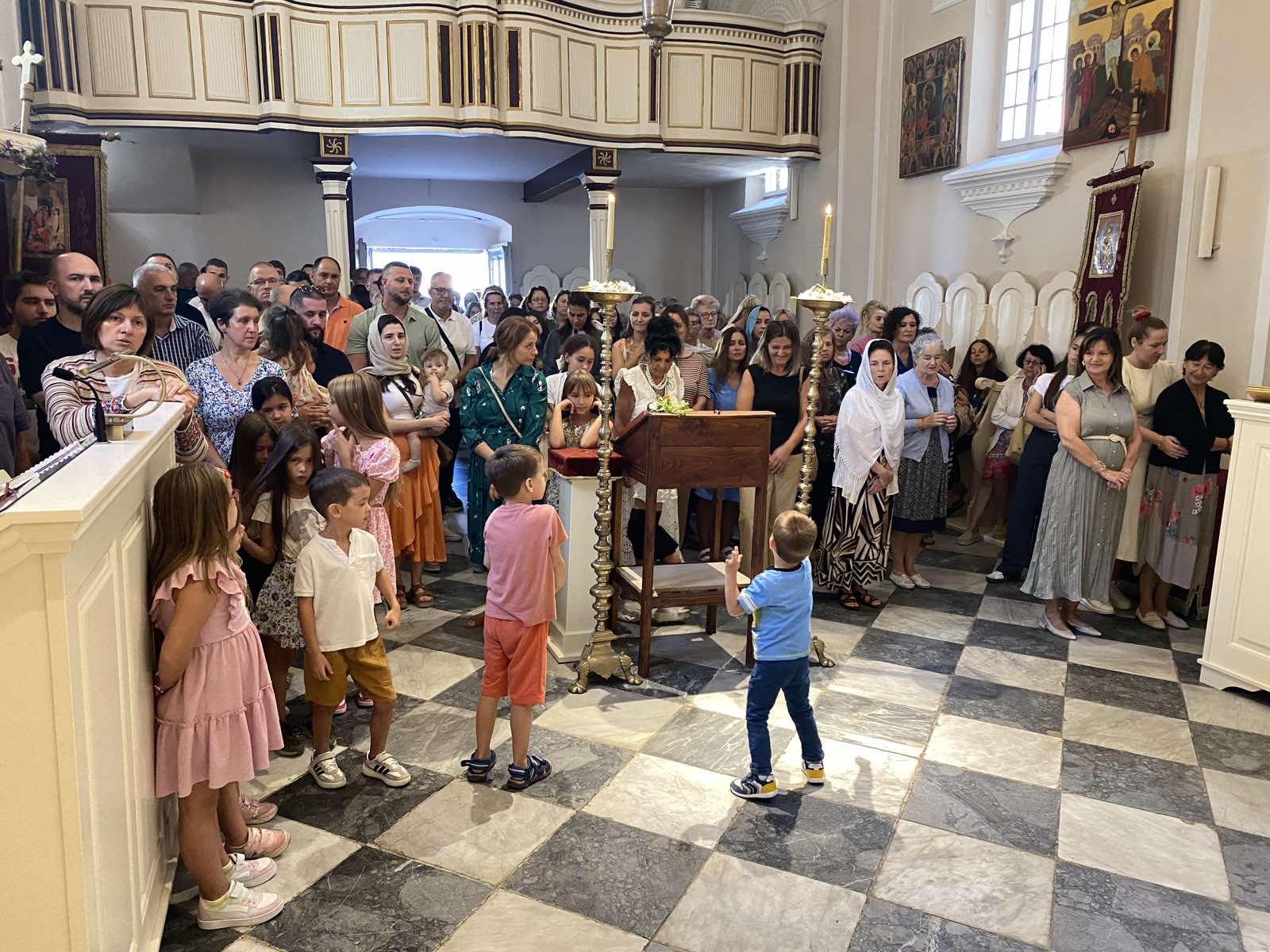 Свету Литургију у саборном храму на Топлој служио је старјешина храма јереј Зоран Миљанић, а мноштво сабраних у одговарању на молитвене прозбе предводио је чтец Ђорђе Павловић. Посебна празнична радост сијала је на лицима сабране дјечице која су хрилиа у првим редовима да се причесте Светим Тајнама.