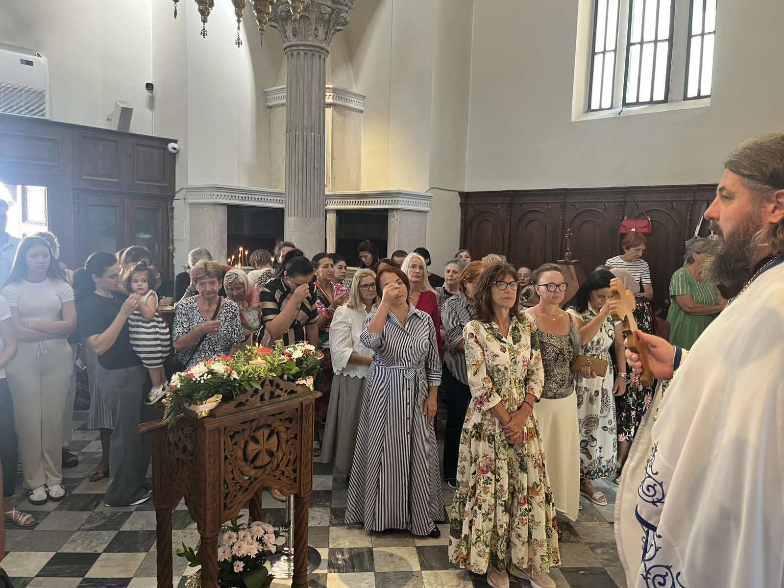 У храму Светог Архангела Михаила светом Литургијом началствовао је архијерејски намјесник херцегновски протојереј-ставрофор Обрен Јовановић уз саслужење јереја Ненада Ковача, док је у олтару прислуживао чтец Немања Бијеловић. Сабране су у празничном појању и одговарању на прозбе предводили појци Славица Секуловић и Ненад Витомировић. Пошто је прочитано јеванђелско зачало, празничном бесједом сабранима се обратио отац Обрен.