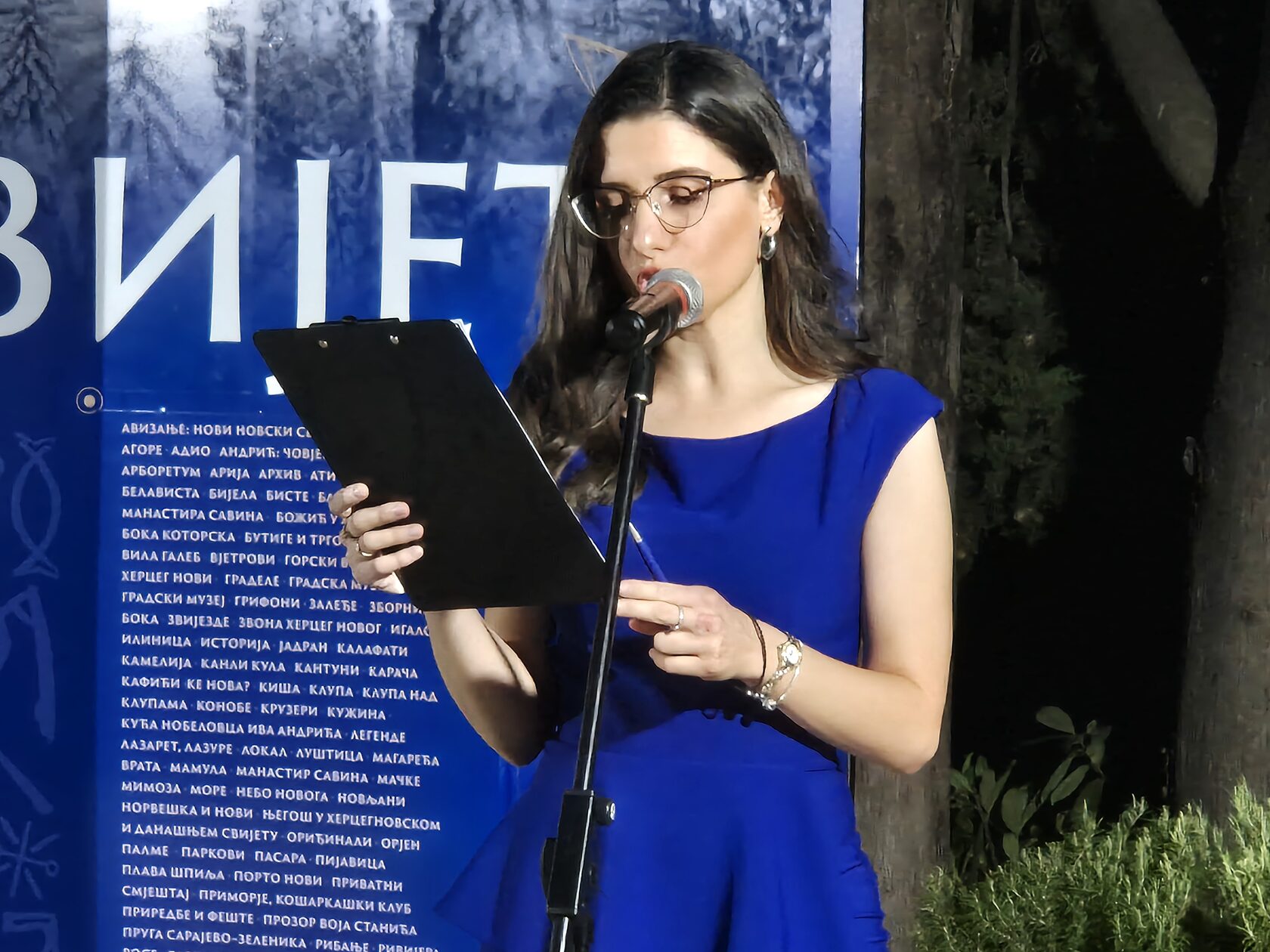 Уредница и водитељка вечери, компаративиста и театролог Теодора Ковач, читала је одабране стихове Рајка Петрова Нога.