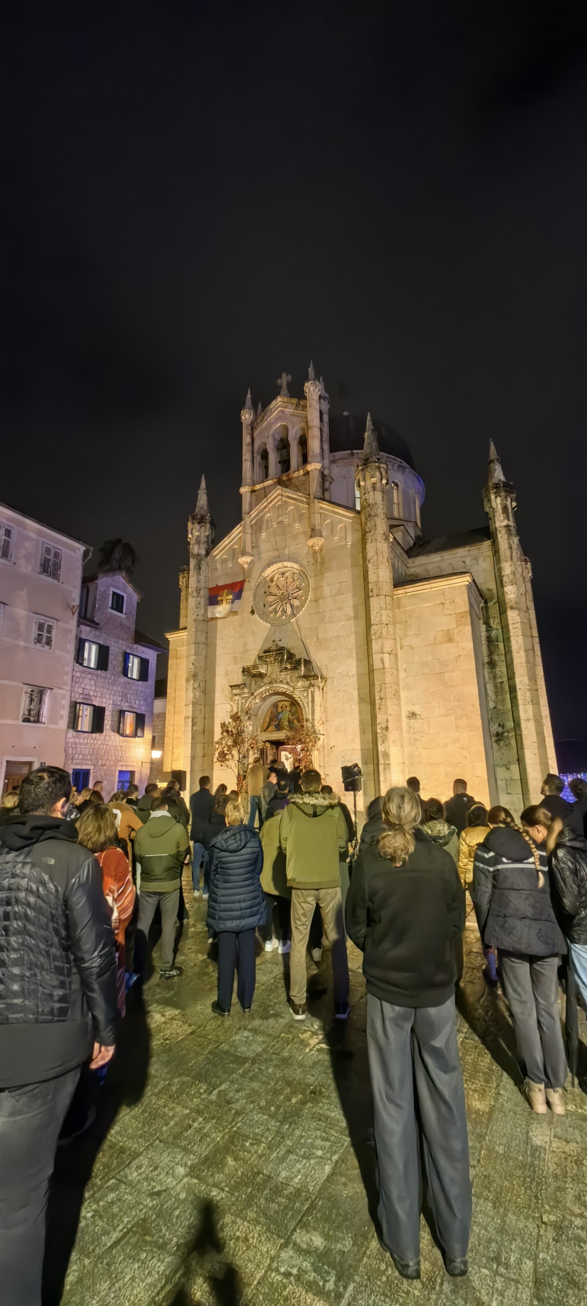 Храм Светог Архангела Михаила у Старом граду свечано је прославио Христово Рождество, најприје празничном јутарњом службом у навечерје празника и поноћном Литургијом у наставку, којом је началствовао протојереј-ставрофор Обрен Јовановић намјесник херцегновски уз саслужење јереја Ненада Ковача. Мноштво сабраних у храму, као и на преиспуњеном Тргу Херцега Стефана предводио је у појању радосних химни, појачки састав предвођен појцима Ненадом Витомировићем и Јасмином Леповић. У литургијском сабрању улешћа је узео и предсједник Општине Херцег Нови г. Стеван Катић. У свештеном олтару прислуживала су дјеца у празничној радости, предвођени чтецима Немањом Бијеловићем, Матејем Дакићем и Јованом Арсовићем.