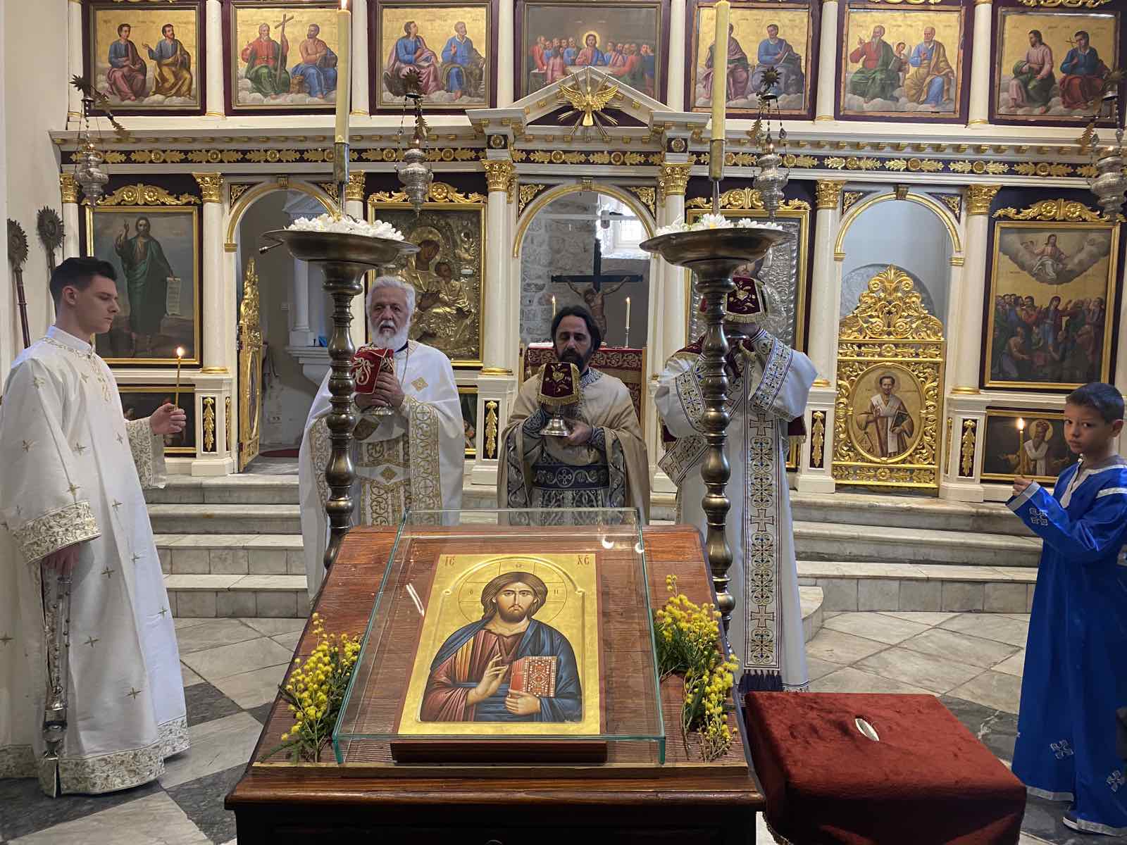 У светом олтару прислуживали су чтец Немања Бијеловић и Јован Арсовић, као и дјеца која похађају вјеронауку.