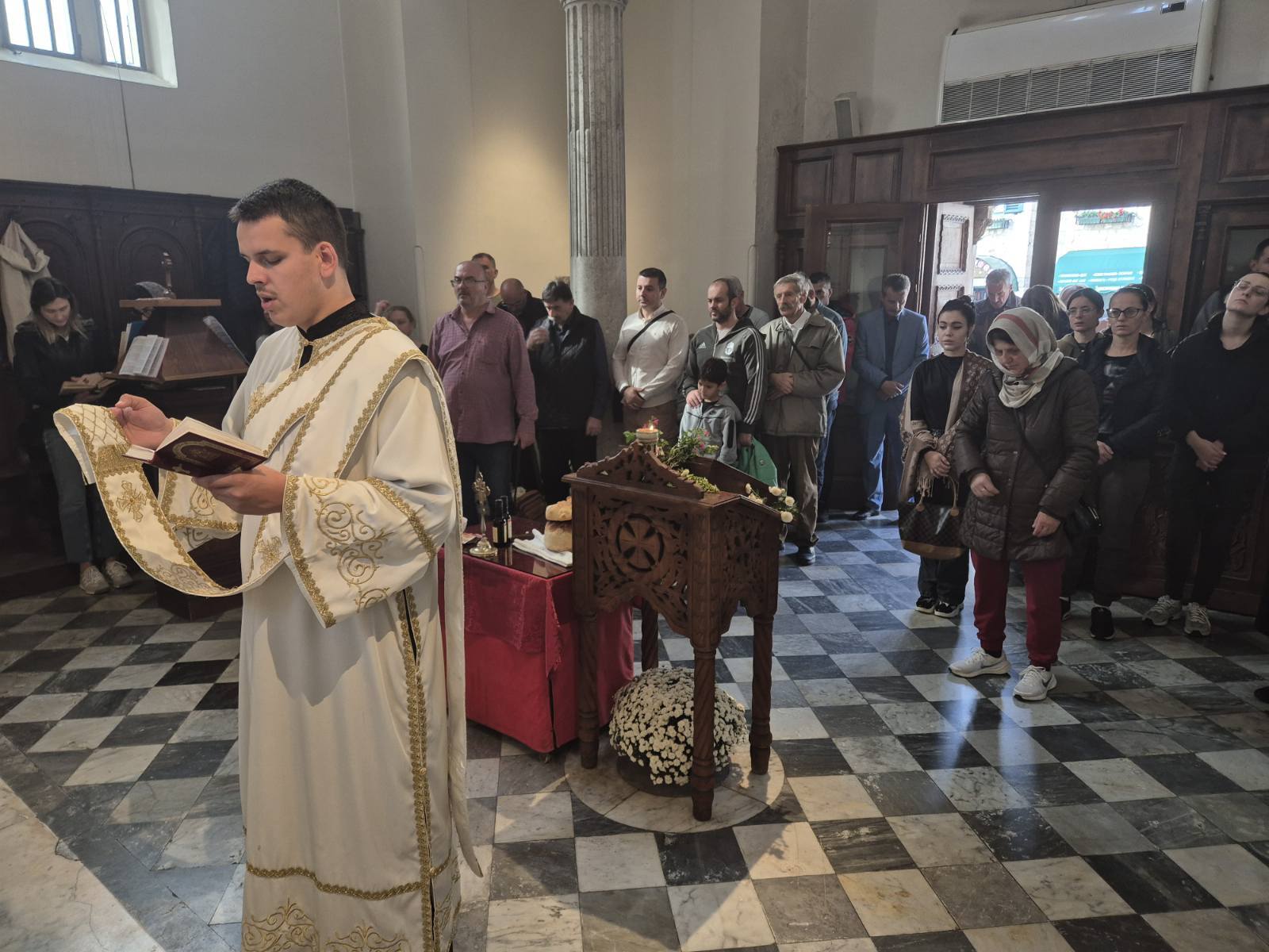 Данас, на празник Светог апостола и јеванђелисте Луке и Светог Петра Цетињског чудотворца, свету Литургију у храму Светог Архангела Михаила служио је старјешина храма протојереј Никола Тодоровић уз саслужење јереја Ненада Ковача и ђакона Илије Преочанина. У одговарању на прозбе вјерни народ предводили су хоровођа Сања Радовић и Савета Вуковић.