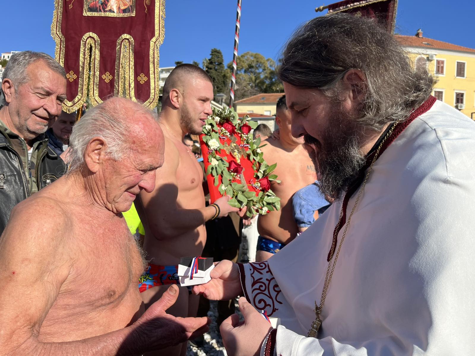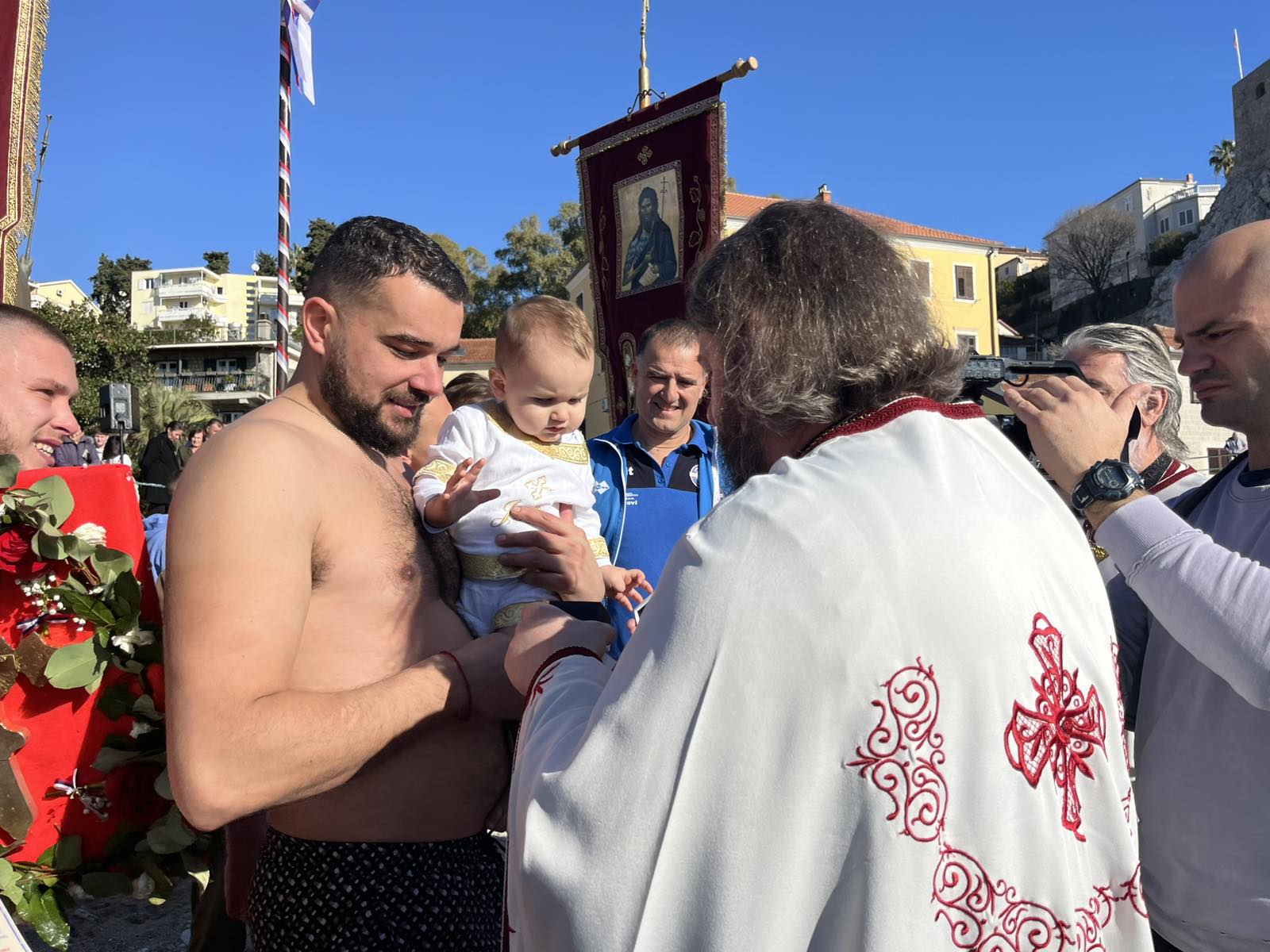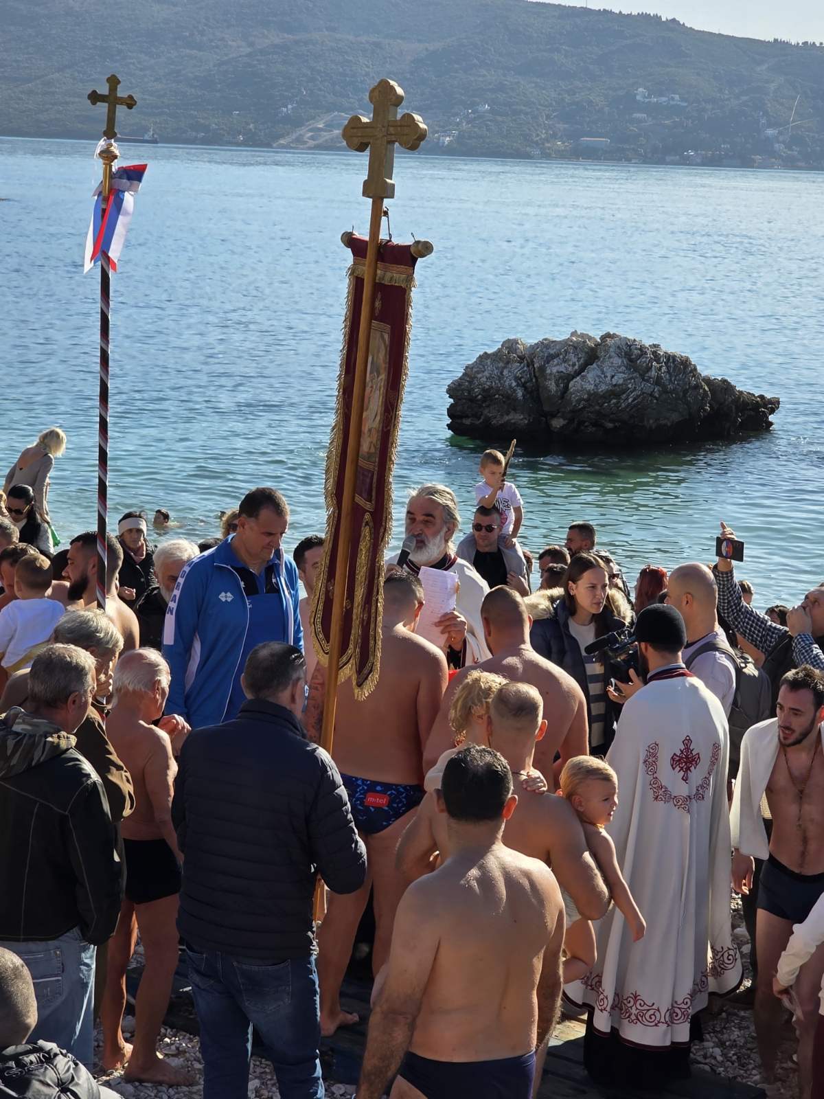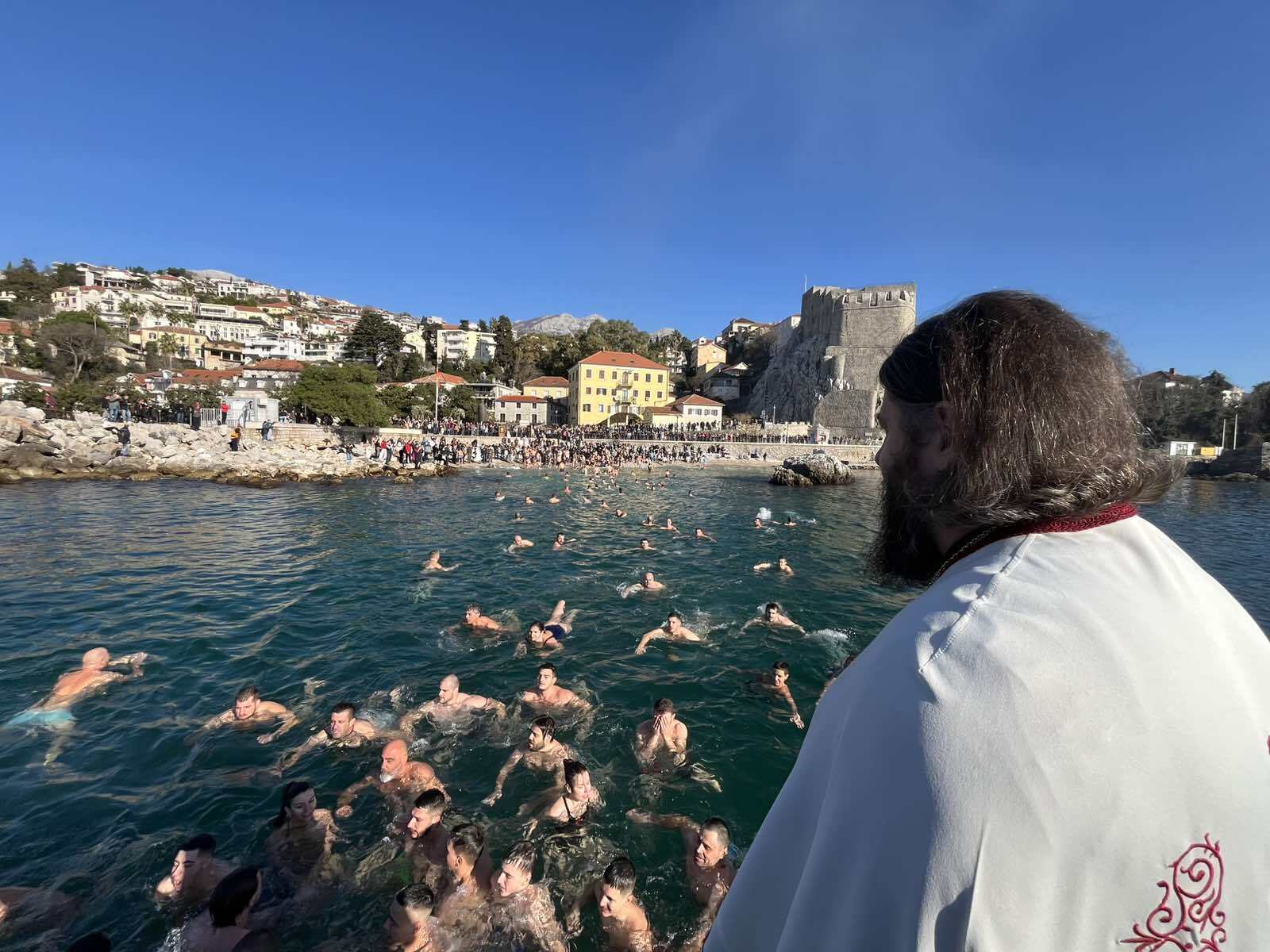 Након свршеног чина великог водоосвећења, захвативши воду за благослов својих домова, сабрани вјерни народ на челу са свештенством нашег храма упутио се литијским ходом ка градској луци Шквер, гдје је благосиљано море и организовано традиционално пливање за часни Крст.