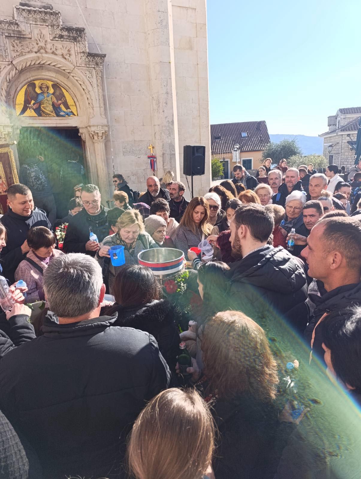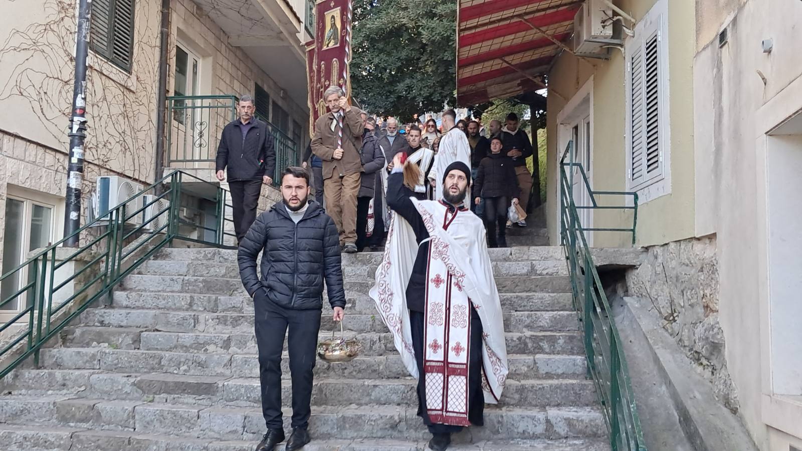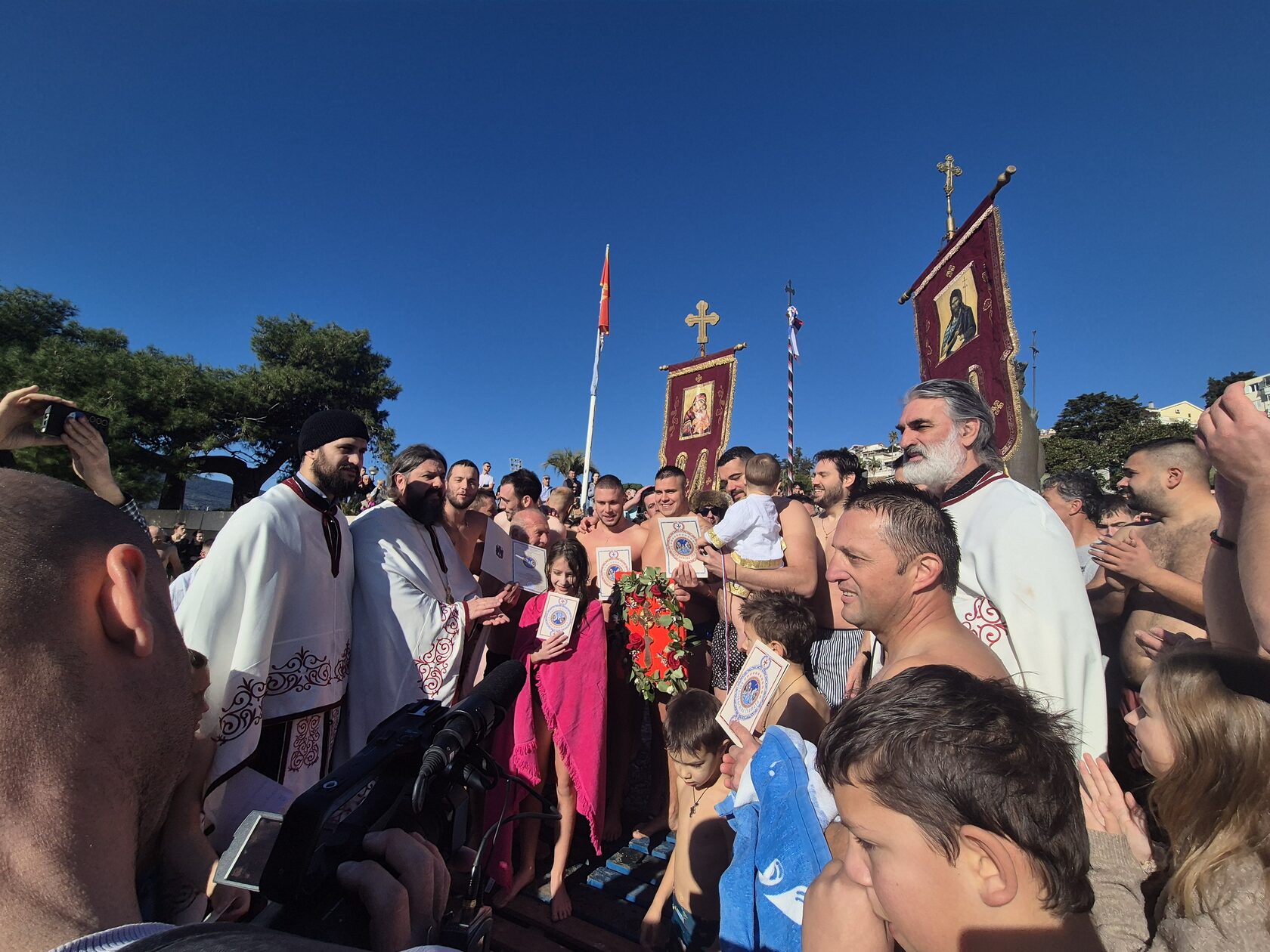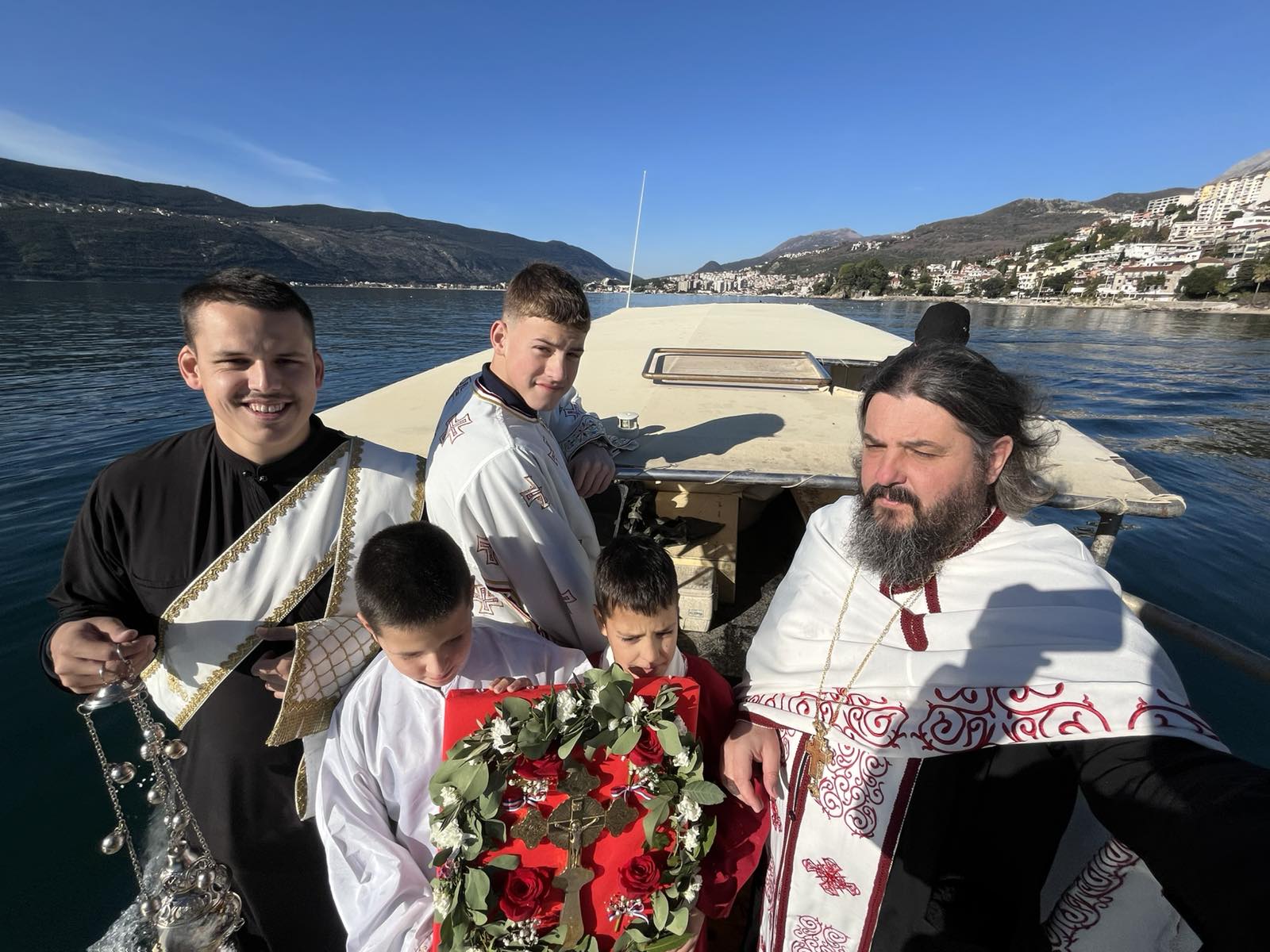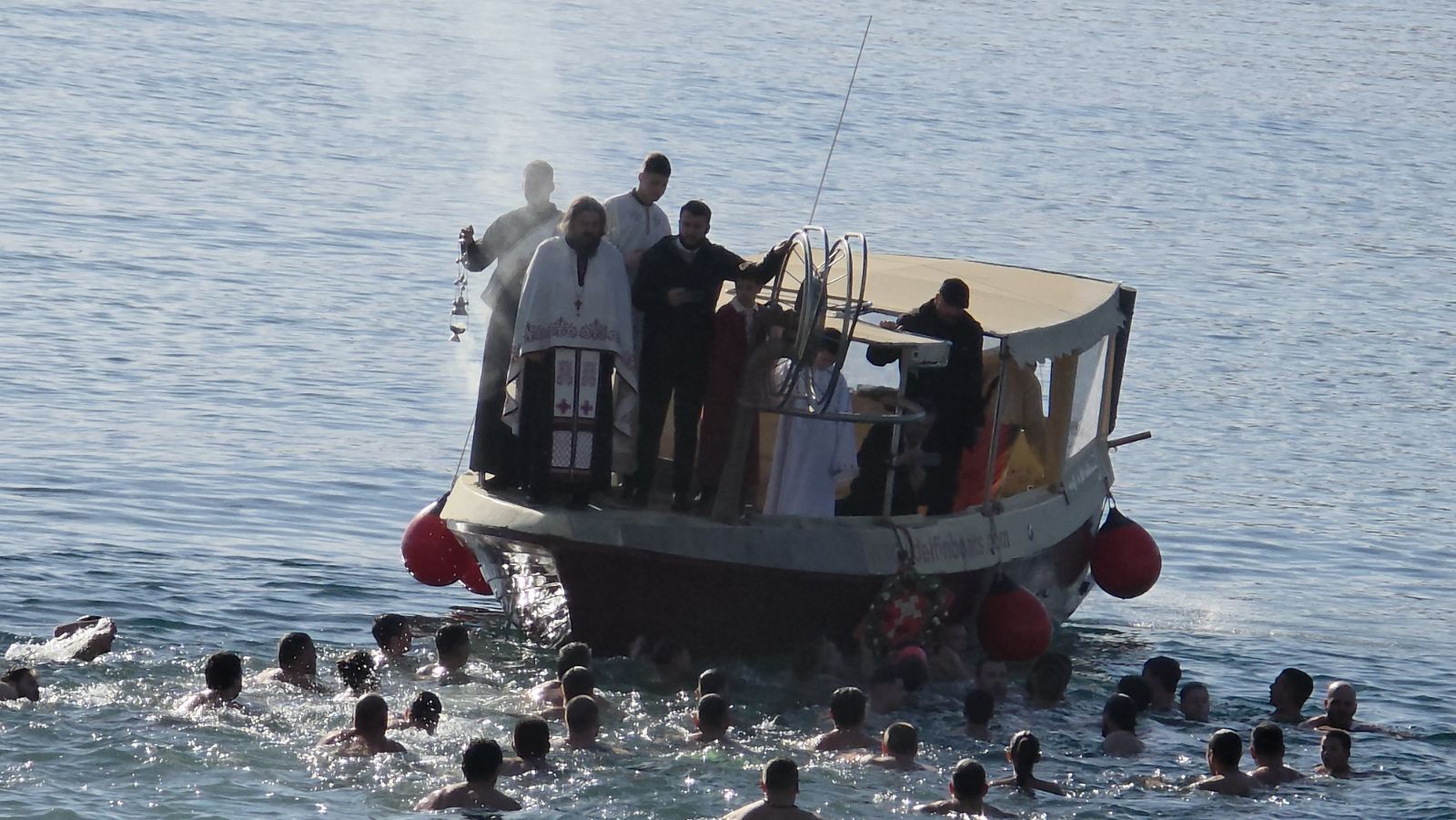 Након свршеног чина великог водоосвећења, захвативши воду за благослов својих домова, сабрани вјерни народ на челу са свештенством нашег храма упутио се литијским ходом ка градској луци Шквер, гдје је благосиљано море и организовано традиционално пливање за часни Крст.