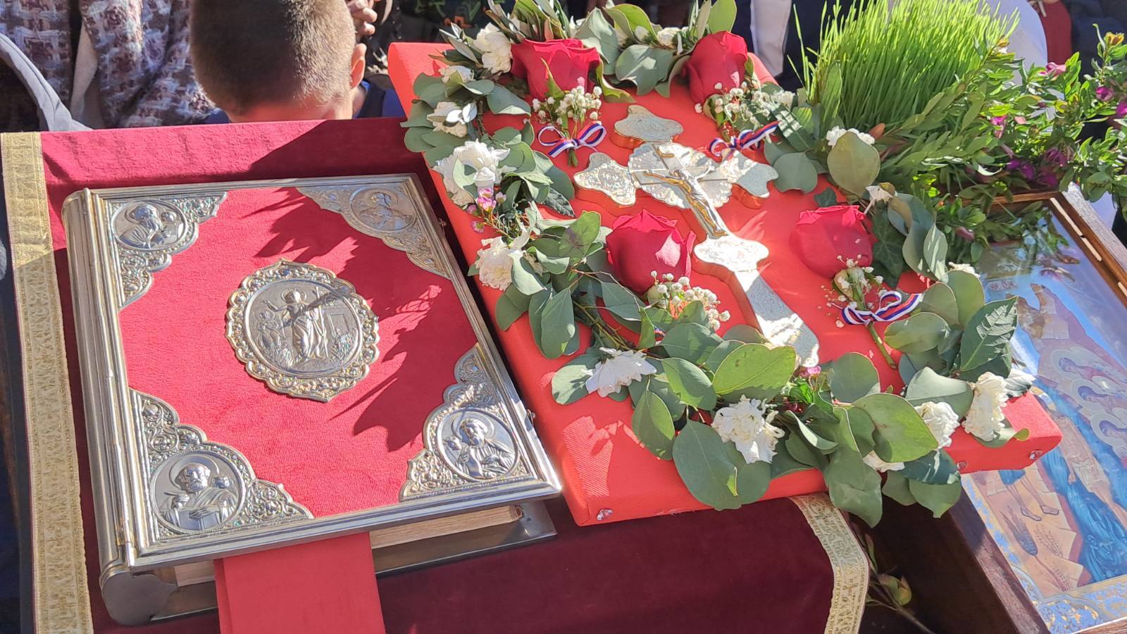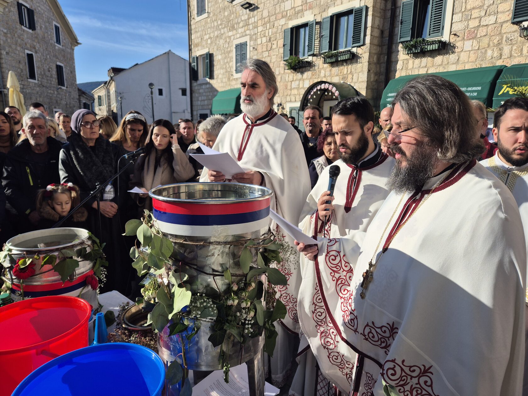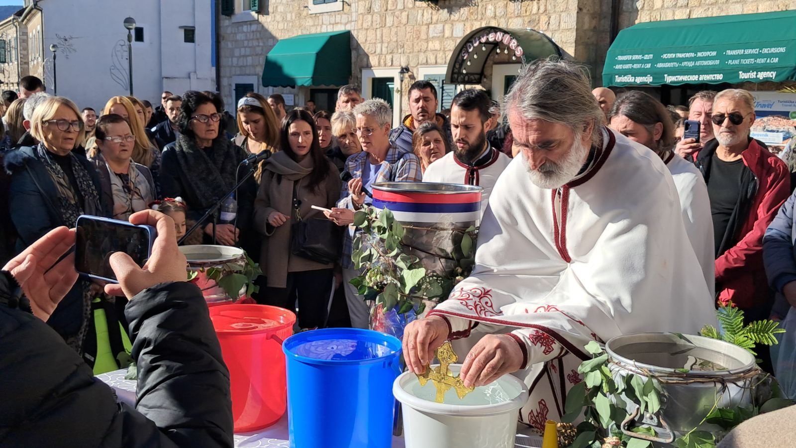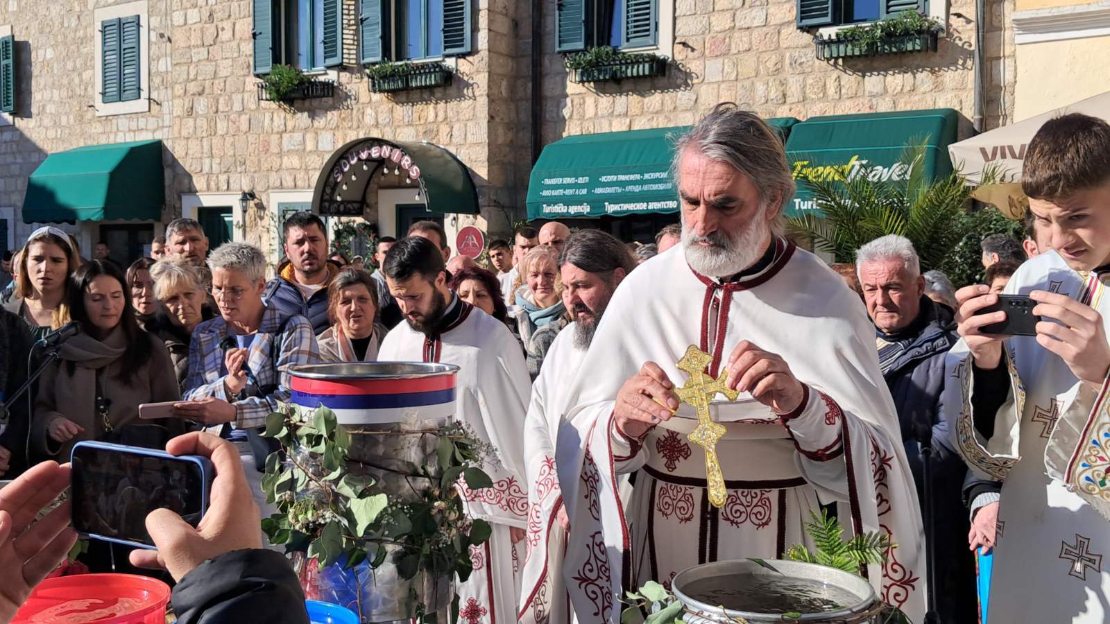 Преиспуњеним тргом Херцег Стефана, одјекивао је пој богослужбених празничних химни уз радосне празничне поздраве Бог се јави - Ваистину се јави.