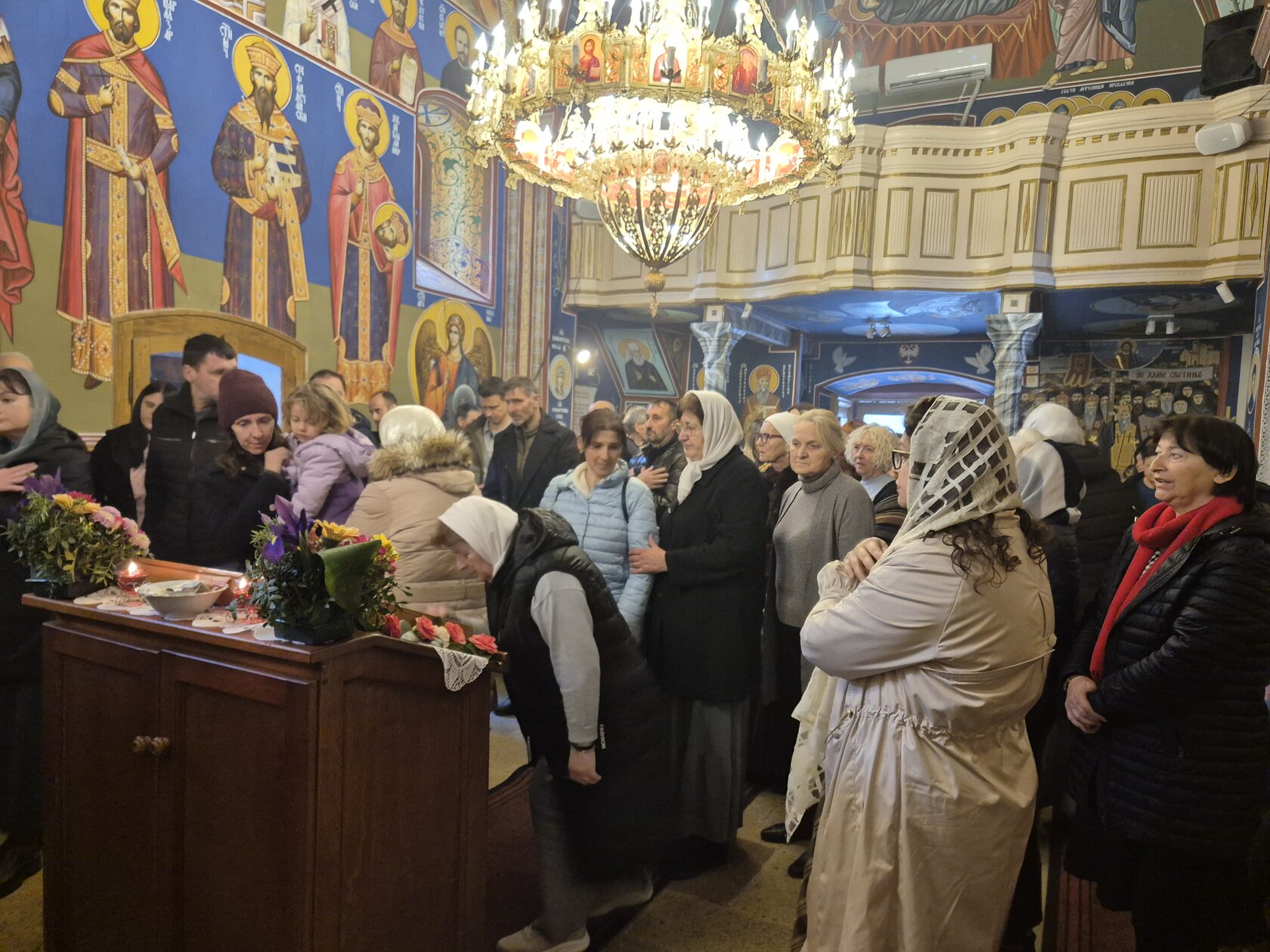 Мноштво сабраних у овоме храму у појању богослужбених химни предводили су појци Милорад и Урош Вукашиновић и Владимир Џелетовић.