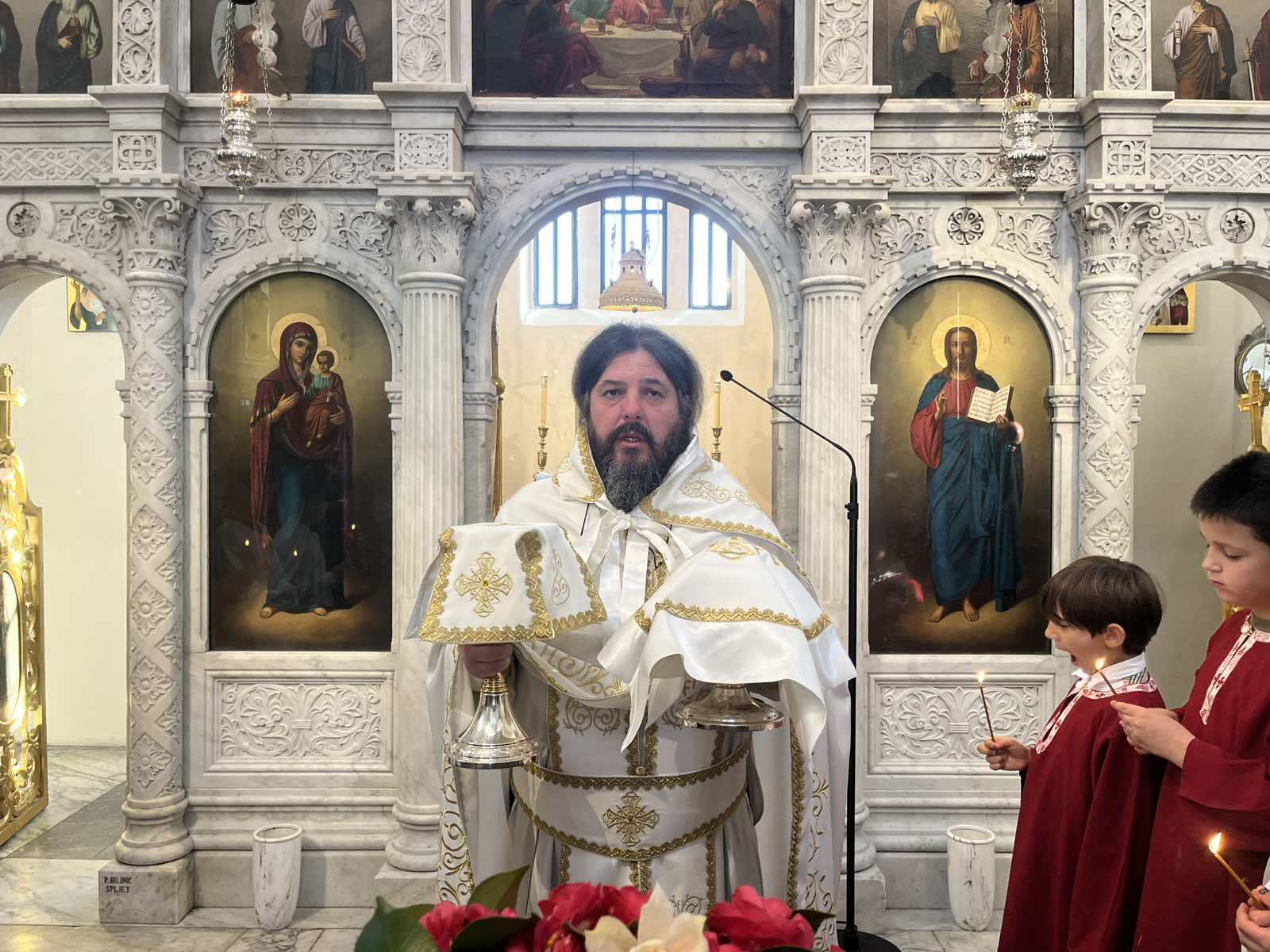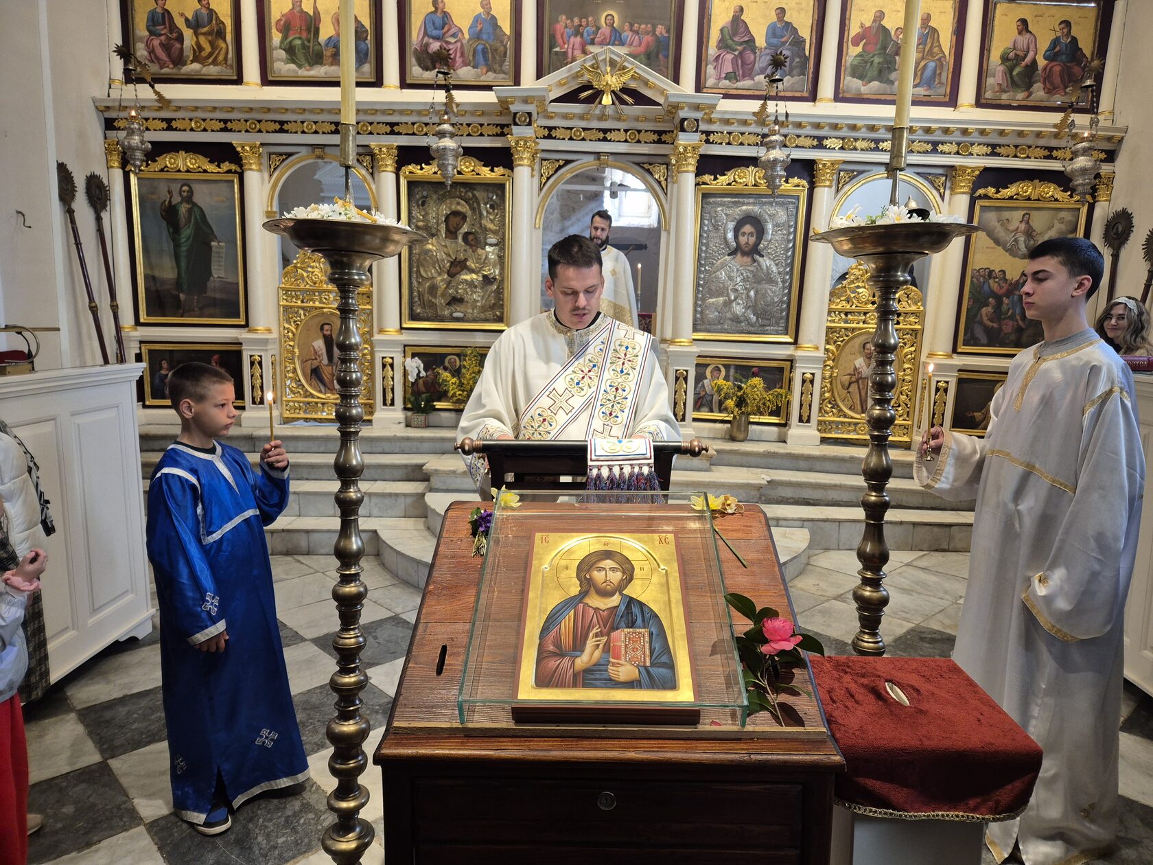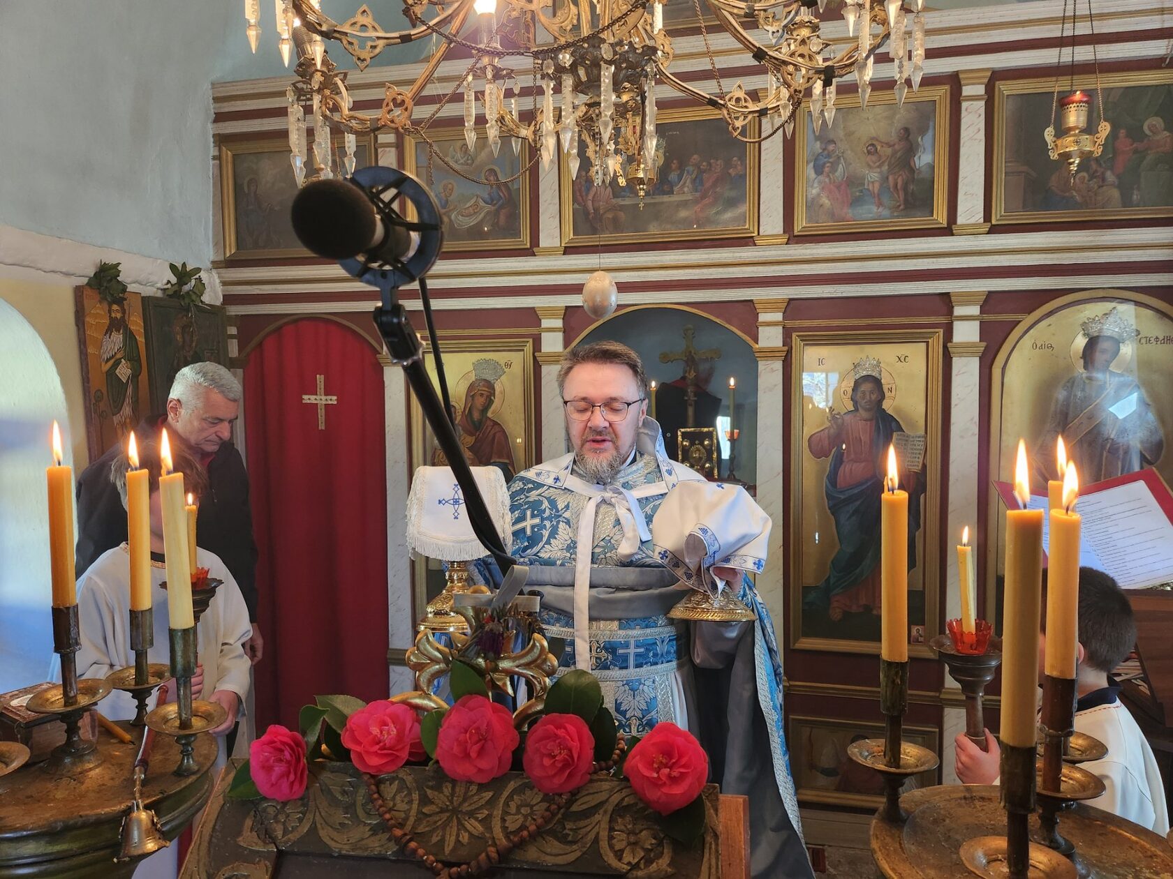 Свету Литургију у храму Светог Стефана на Сушћепану служио је протојереј Владан Пантелић, старјешина овог светог храма. Сабране у овоме храму у појању литургијских химни предводили си појци Урош Вукашиновић и Александар Војводић. Након прочитаног јеванђелског зачала отац Владан је произнио пригодно пастирско слово.